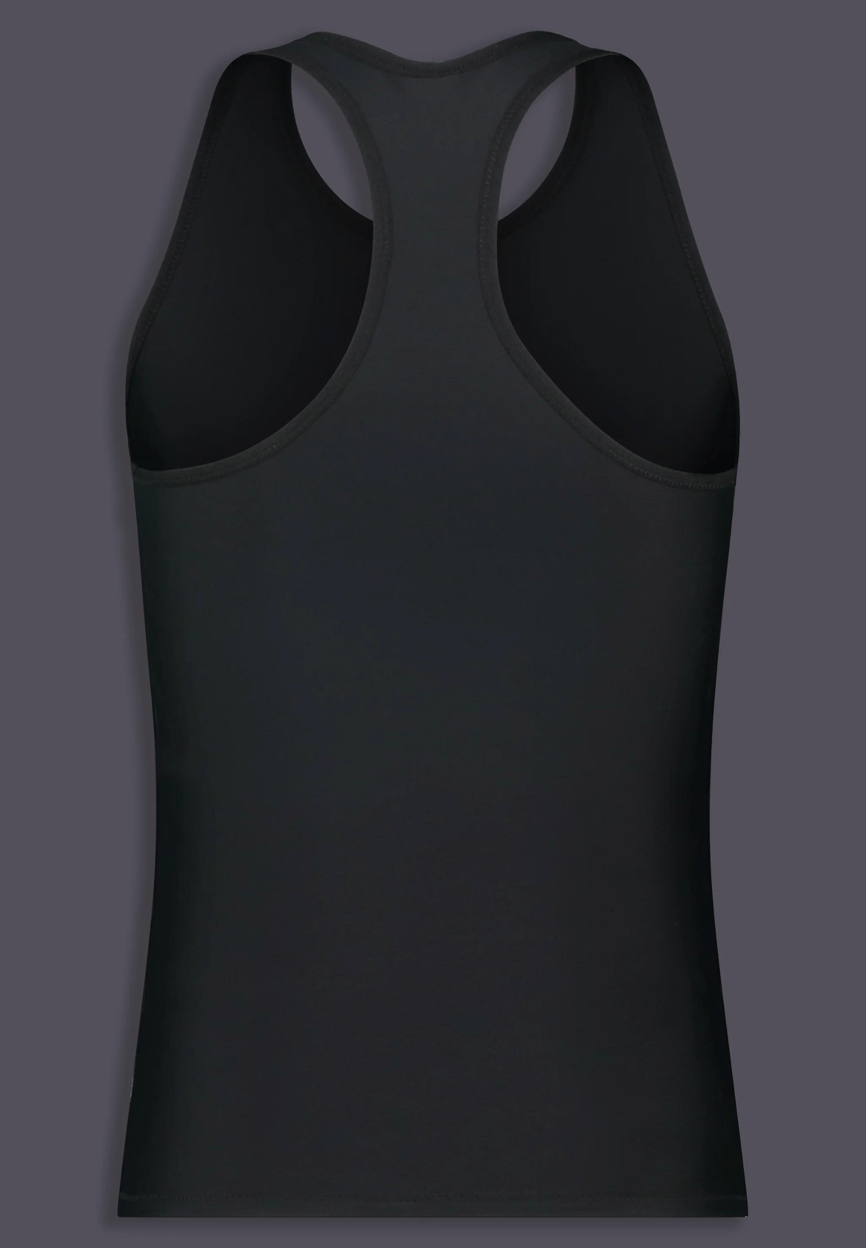Dlouhý binder se sportovně vykrojenými racer zády, které umožňují volný pohyb lopatek. Díky tomu je skvělý na cvičení, ale je také vhod pro osoby na invalidním vozíku, protože nijak neomezuje ramena. Ideální pro výrazně efektivní a bezpečnou kompresi hrudníku, ale zároveň je dostatečně měkký, aby se mohly žebra při dýchání roztahovat. Je velmi efektivní a stahuje také křivky boků a břicha. Vhodný pro větší velikosti. Pevně drží, ale zároveň je dostatečně měkký a pohodlný. Průramky jsou střižené tak, aby nikde nic nevylézalo a vše bylo pěkně schované. Hlubší výstřih se schová i ve výstřihu do V. Tílko je ukončené silikonovým lemem, aby se nevyhrnulo z boků. Tento binder je opravdu hodně těsný, volte ideálně o 2 velikosti větší, než vám radí tabulka velikostí.