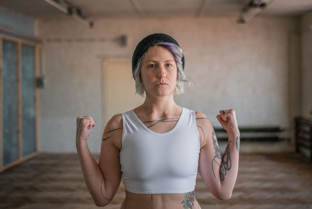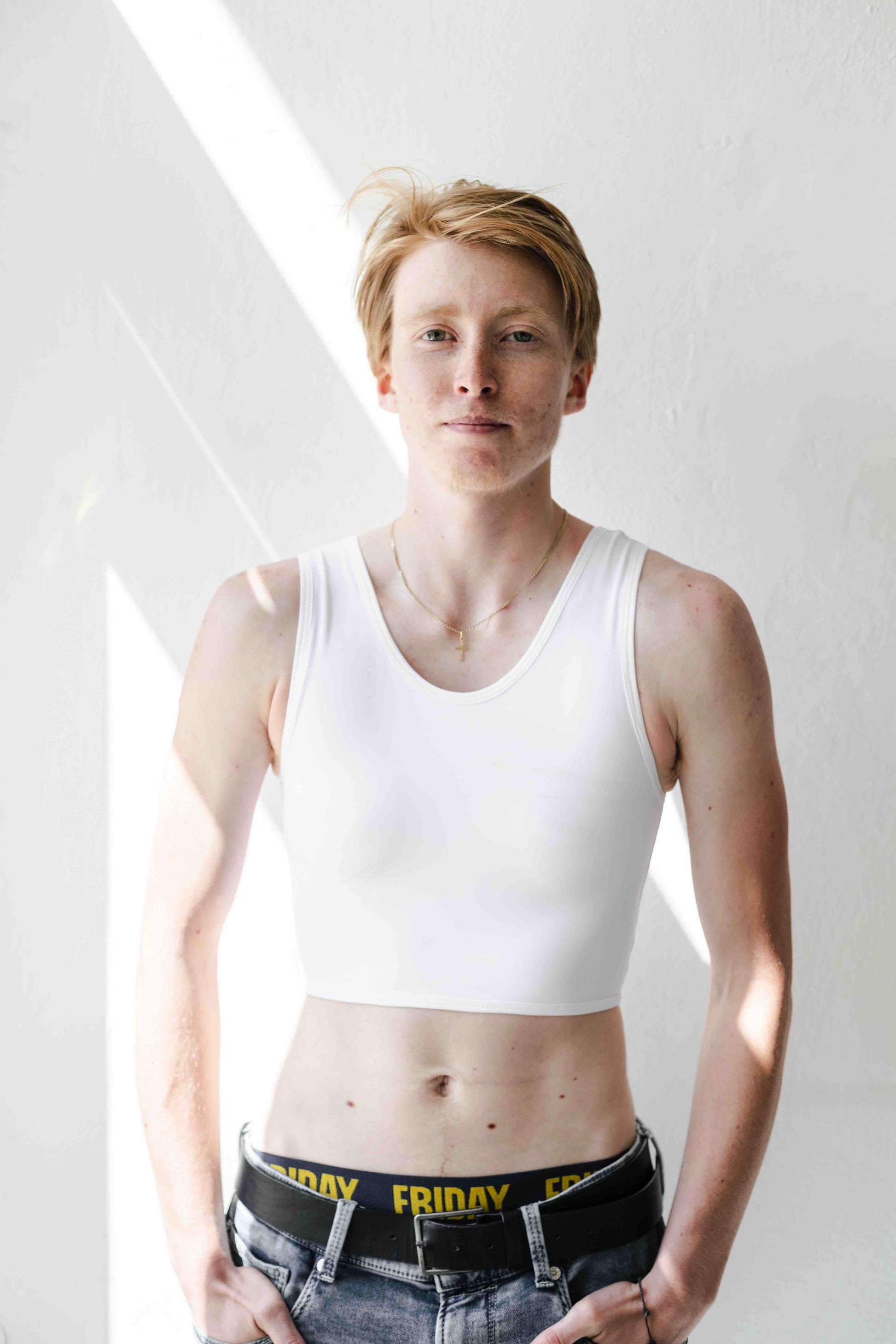 Krátká verze základního binderu. Vhodný na každodenní nošení. Pevně drží a výrazně zplošťuje hrudník, proto může být trošičku náročnější jeho oblékání a vysvlékání. Průramky jsou střižené tak, aby nikde nic nevylézalo a vše bylo pěkně schované. Hlubší výstřih se schová i ve výstřihu do V.