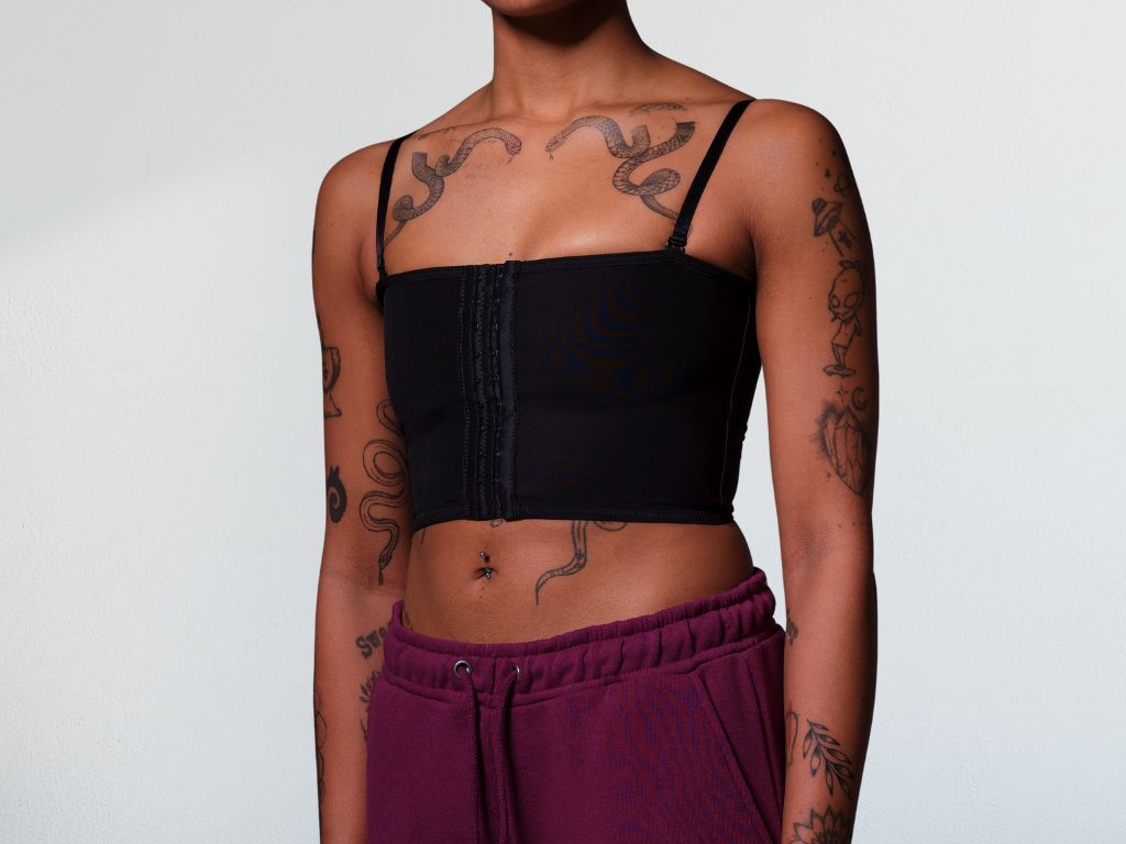 Pásový binder, který vám pomůže efektivně zploštit hrudník bez viditelných ramínek. Zároveň je ale navržený pro období po top surgery, kdy pomáhá zmírnit otoky a podpořit hojení jizev – ale díky nastavitelné kompresi je skvělý i pro každodenní nošení.